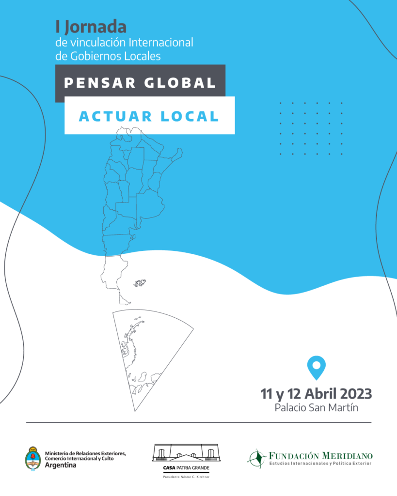 En este marco, la Subsecretaría y la Dirección de Asuntos Nacionales de Cancillería, la Casa Patria Grande “Presidente Néstor C. Kirchner” y la Fundación Meridiano de Estudios Internacionales y Política Exterior co-organizamos la “1era Jornada de Vinculación Internacional de Gobiernos Locales” durante los días 11 y 12 de abril del corriente año en el Palacio San Martín.